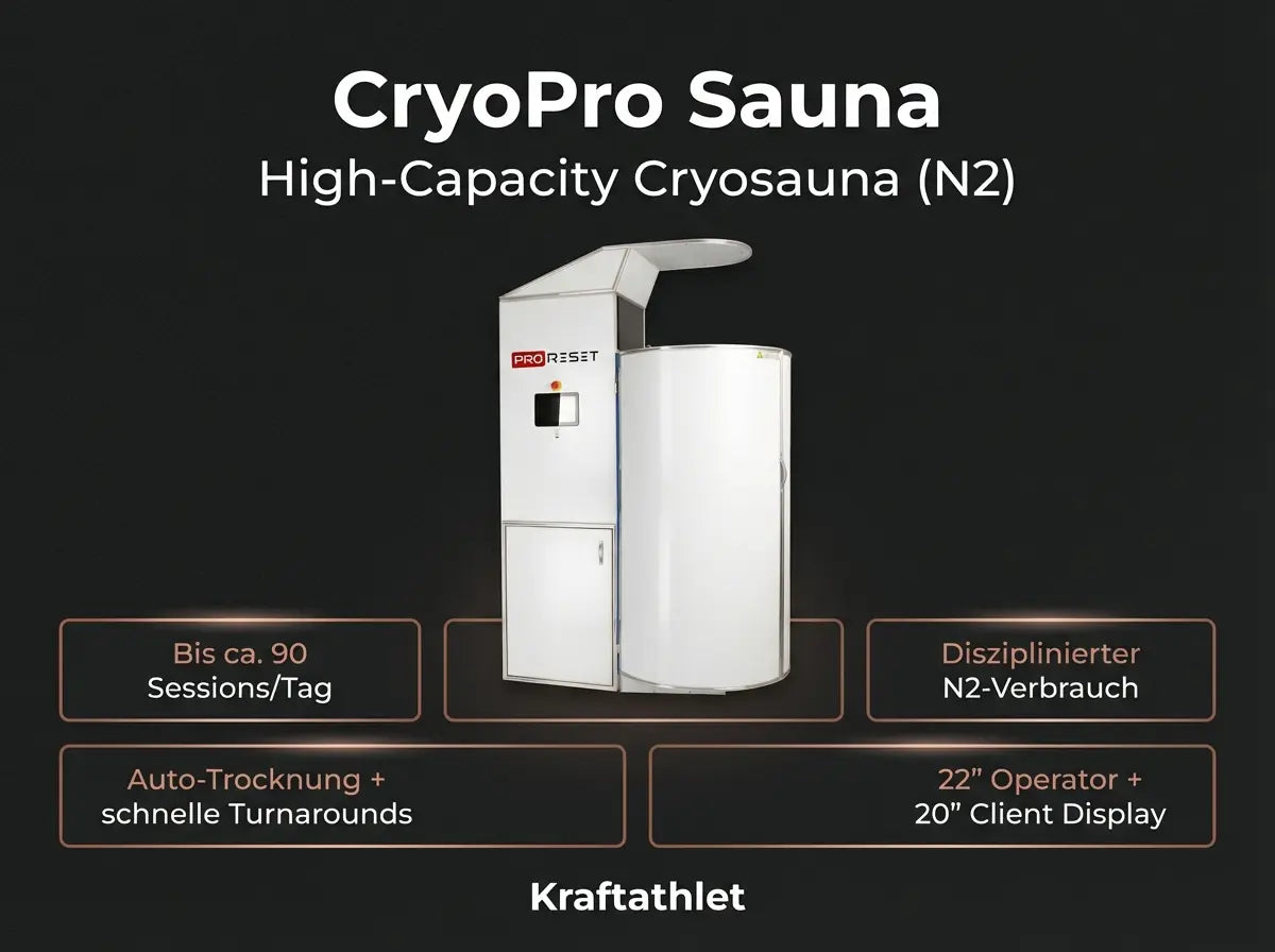 Wenn Sie Cryo als Daily-Volume Service verkaufen wollen: CryoPro Sauna ist das robuste Setup dafuer.
