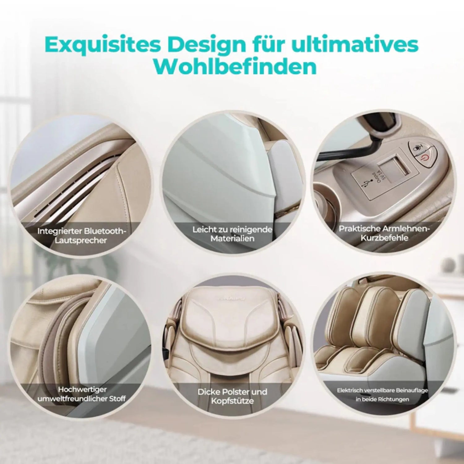 Regelmäßige Nutzung des Naipo R50 bietet nachweisliche gesundheitliche Vorteile: Stressabbau, verbesserte Durchblutung, Linderung von Muskelverspannungen, Förderung der Regeneration und Verbesserung der Schlafqualität. Der Massagestuhl eignet sich ideal für Menschen mit sitzender Tätigkeit, Sportler in der Regenerationsphase oder alle, die professionelle Massage-Therapie zu Hause genießen möchten.