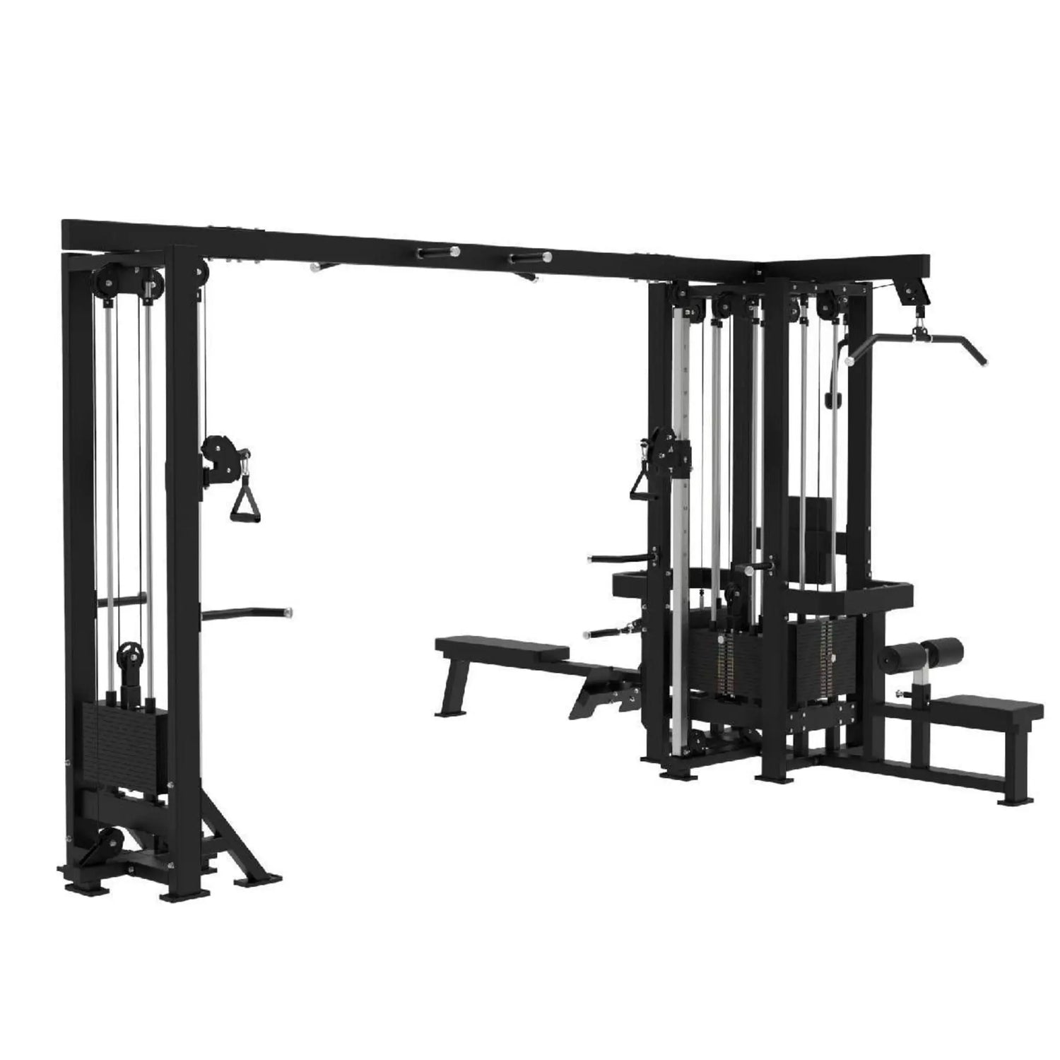 Frage: Ist die Multi-Gym-Maschine für intensive kommerzielle Nutzung geeignet? Antwort: Absolut. Mit 880 kg Gesamtgewicht, 5 x 100-kg-Gewichtsstacks, massiver Stahlkonstruktion (50x100x2,5 mm dreifach beschichtet), verstärkten Gewichtsplatten und wartungsarmer Technologie ist sie speziell für intensive kommerzielle Dauerbenutzung in professionellen Fitnessstudios und Sportzentren konzipiert.