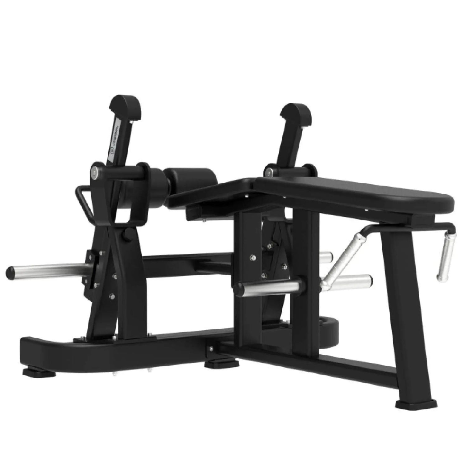 Experience balanced hamstring isolation with this professional plate-loaded Prone Leg Curl. The divergent pad angle alleviates lumbar stress and allows independent training of each leg.