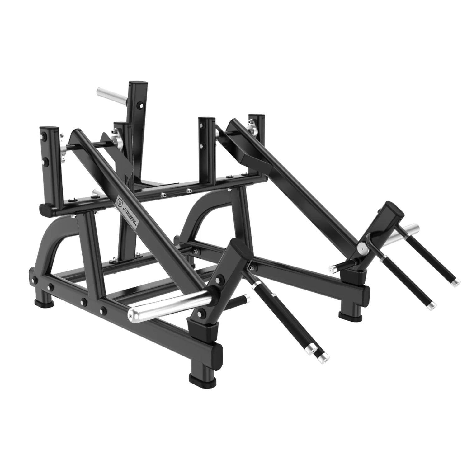 Die Titanium Strength Squat Lunge Black Series revolutioniert Ihr Training mit ihrer multifunktionalen, plattenbelasteten Bauweise, die sowohl für Unterkörper- als auch Oberkörperübungen konzipiert wurde. Diese kommerzielle Kraftstation vereint die natürliche Bewegungsfreiheit von freien Gewichten mit der Sicherheit und Kontrolle eines maschinengeführten Systems. Mit unabhängigen Hebelarmen und robuster Konstruktion setzt sie neue Maßstäbe für effektives Krafttraining in professionellen Fitnessumgebungen.