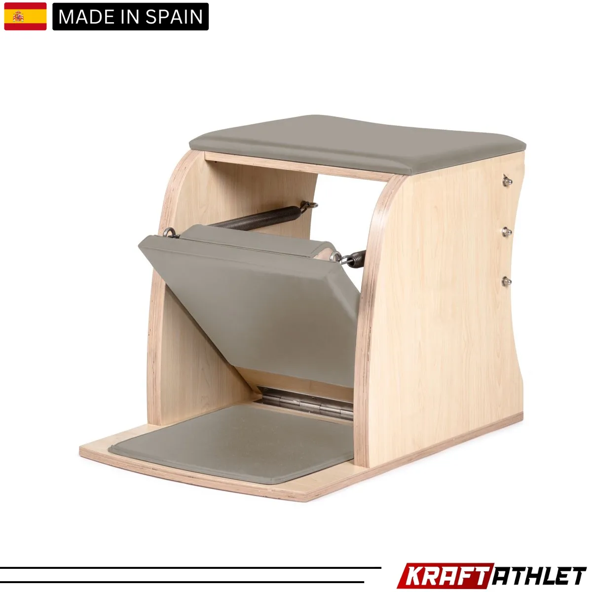 Der Elina Pilates Wunda Classic Chair bringt die ursprüngliche Vision von Joseph Pilates in dein Zuhause oder Studio. Dieser handgefertigte Pilates-Stuhl aus premium Ahornholz verwandelt jeden Raum in ein professionelles Trainingsstudio und ermöglicht über 100 verschiedene Übungen auf minimalster Grundfläche. Erlebe die Kraft des authentischen Pilates-Trainings mit dem Gerät, das Generationen von Pilates-Enthusiasten geprägt hat.