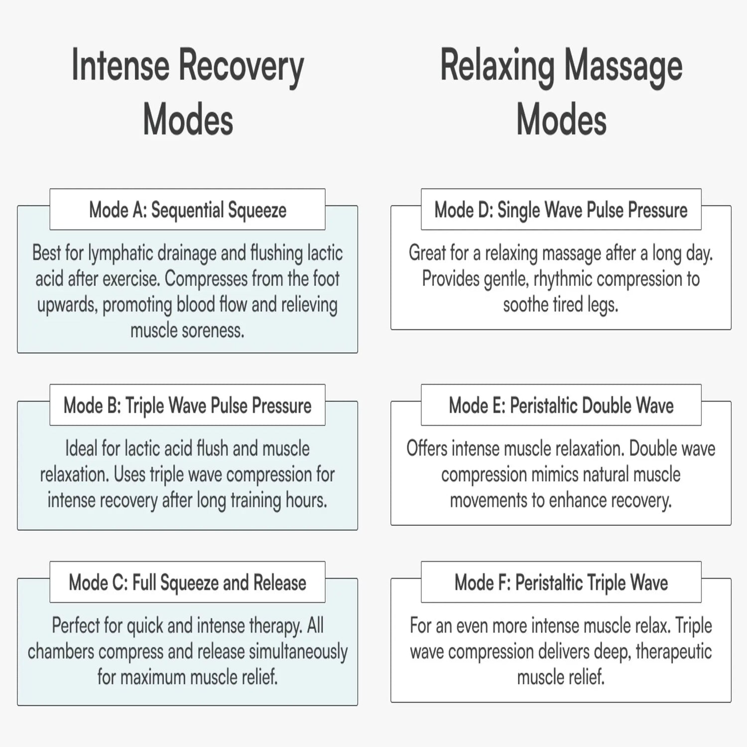 Sechs wissenschaftlich entwickelte Recovery-Programme mit Pulsmodi