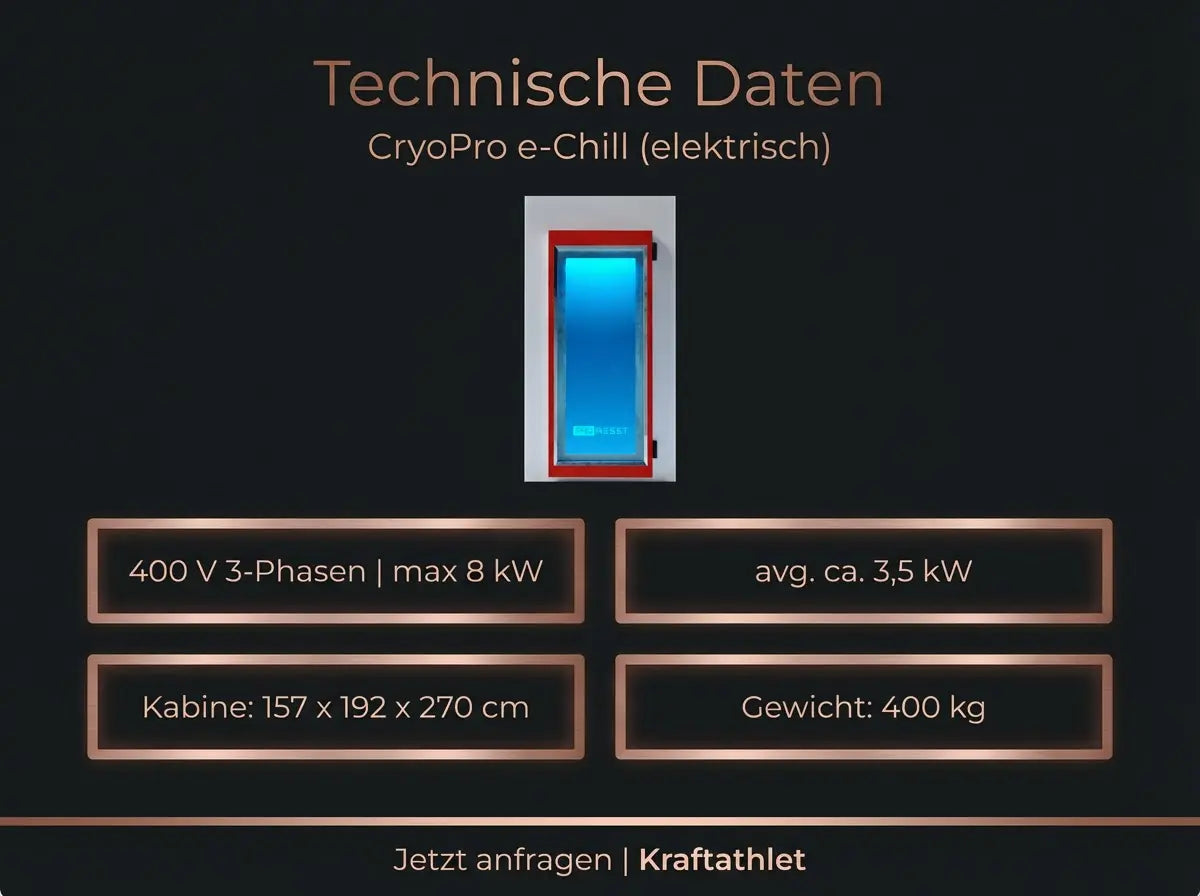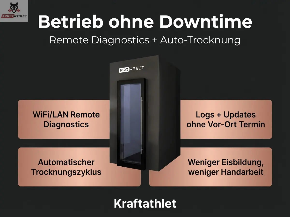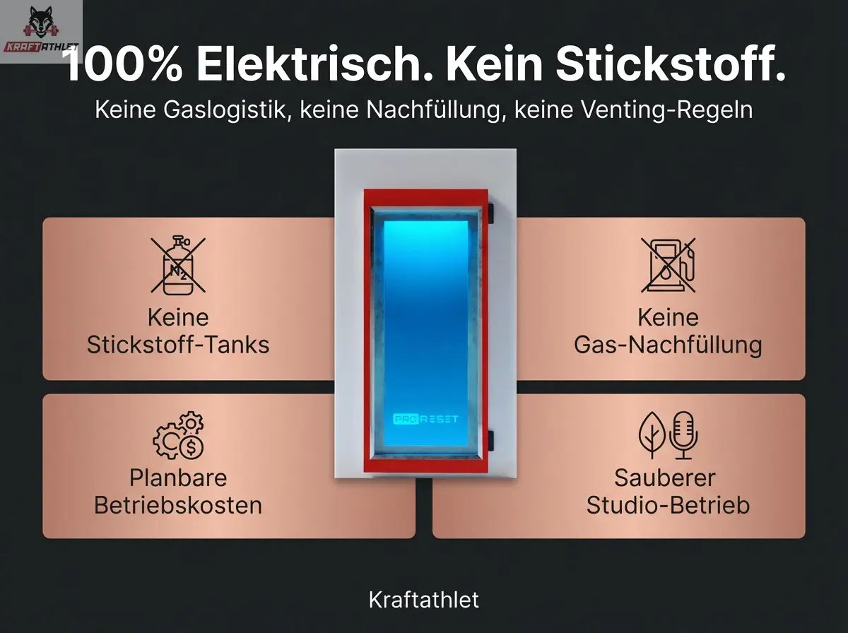 Wenn Sie Cryotherapie als Premium-Service anbieten wollen, aber keine Stickstoff-Nachfuellung, keine Venting-Regeln und keine unplanbaren Betriebskosten akzeptieren: Das ist das Setup.
