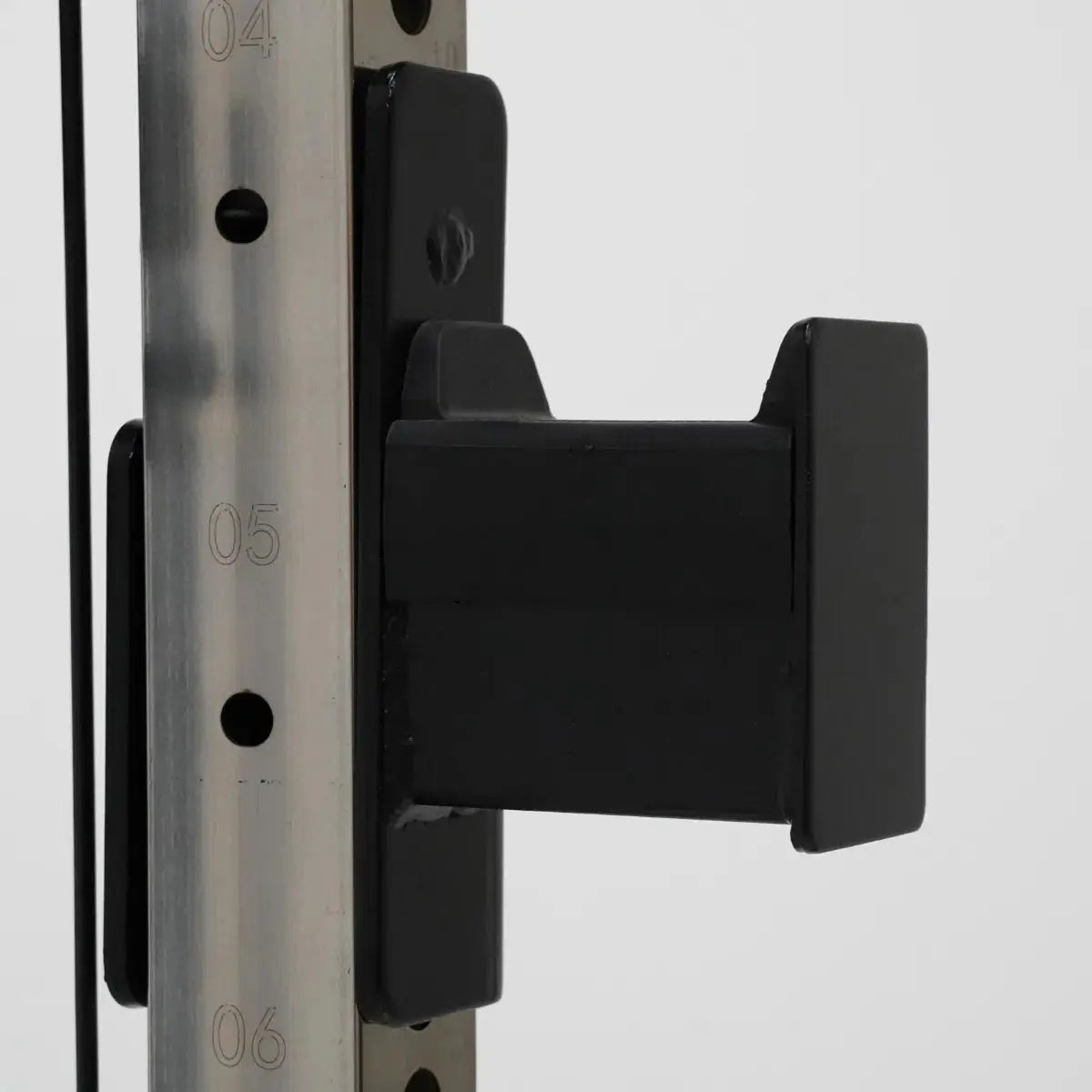 Die durchdachten Aufbewahrungslösungen des G3 V2 halten den Trainingsbereich organisiert und professionell. Sechs integrierte Gewichtsscheibenhalter, vier Zubehör-Haken und dedizierte Langhantel-Aufbewahrung sorgen dafür, dass alle Komponenten sicher verstaut und griffbereit sind. Diese Organisation trägt nicht nur zur Sicherheit bei, sondern verleiht dem gesamten Setup auch ein hochwertiges, studiofähiges Aussehen.