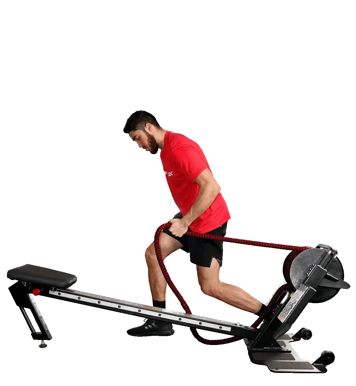 - Combines rowing and rope pulling exercises to activate all major muscle groups