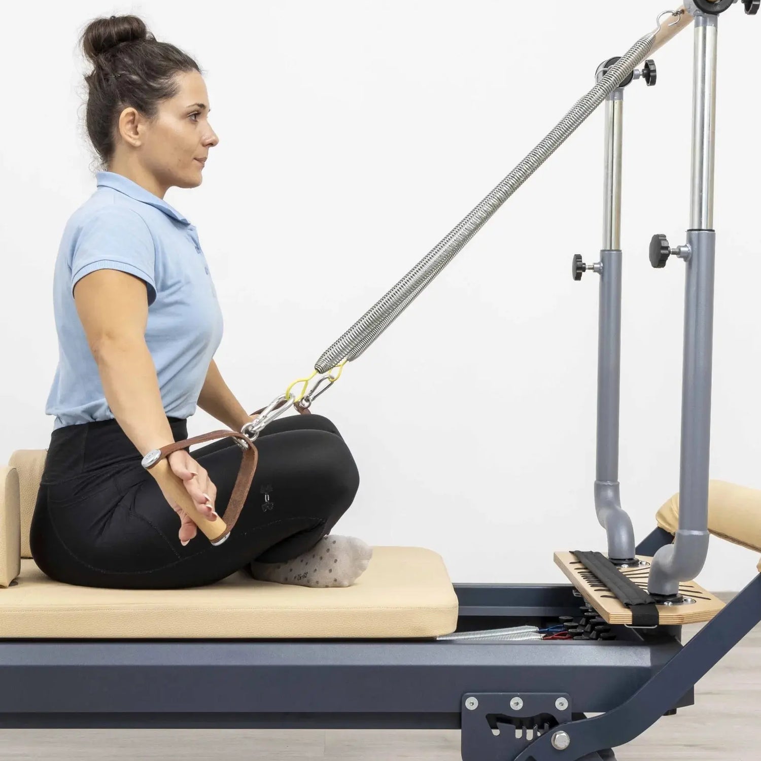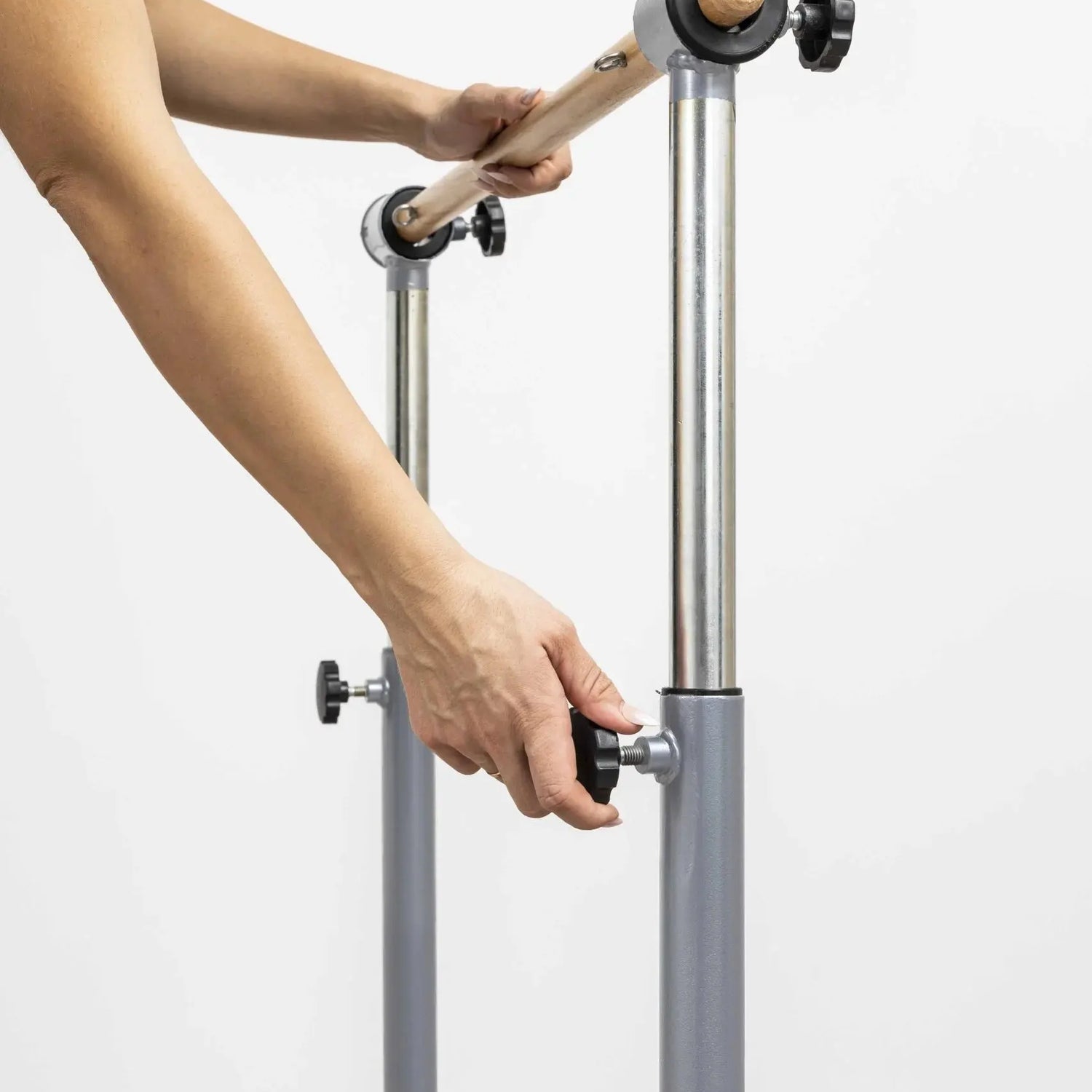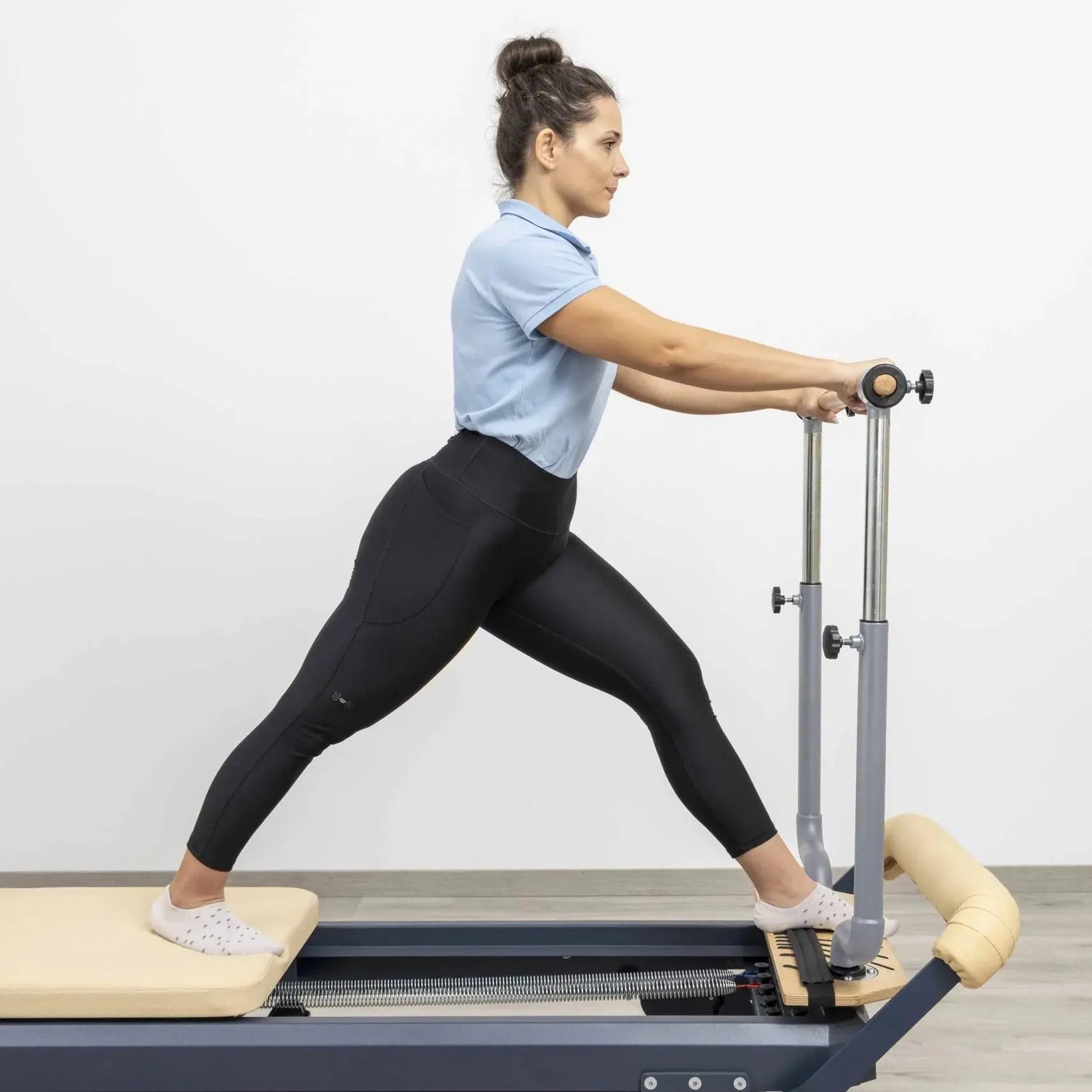 Die gleichmäßige Abstände zwischen den Haltern verhindert, dass sich die Bars gegenseitig berühren oder verkratzen, was die Lebensdauer der teuren Equipment verlängert und deren professionelles Erscheinungsbild bewahrt. Diese durchdachte Geometrie zeigt die tiefe Kenntnis der praktischen Anforderungen professioneller Pilates-Studios.