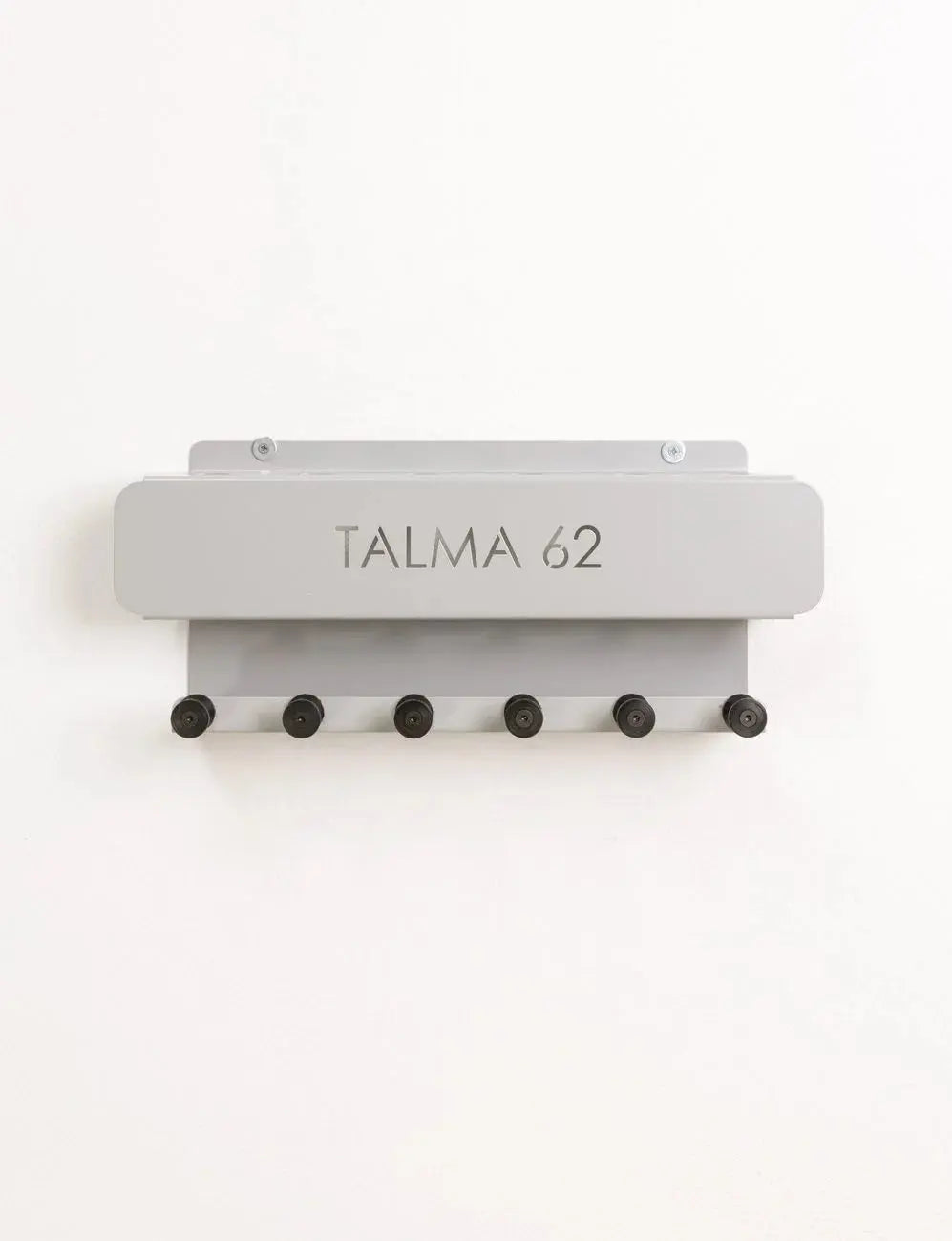 Der Hegren Pilates Stick Stand ist eine langlebige, platzsparende Aufbewahrungslösung, die Ihr Studio organisiert hält und Ihre meistgenutzten Zubehörteile jederzeit zugänglich macht. Diese wandmontierte Halterung ist ideal für die tägliche Nutzung und perfekt zur Aufbewahrung von Pilates-Sticks, Federn, Widerstandsbändern und anderen kleinen Trainingsanhängen, die Ihr TALMA 62 System unterstützen. Mit seiner robusten Stahlkonstruktion, elektrostatischer Silberlackierung und dem eingravierten TALMA 62 Logo bietet dieser professionelle Zubehörständer sowohl funktionale Exzellenz als auch ästhetische Integration in moderne Studio-Environments.